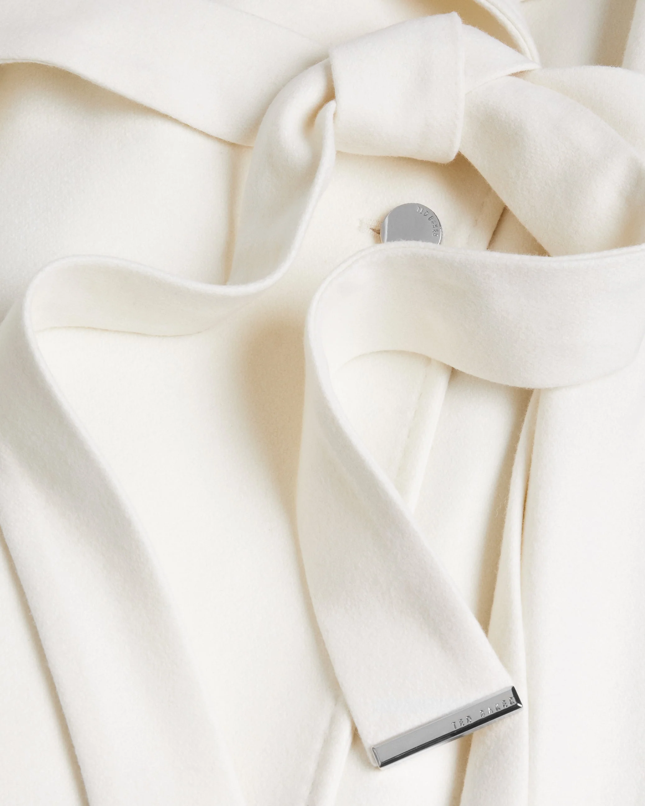 Rose Midi Length Belted Wool Wrap Coat Ivory